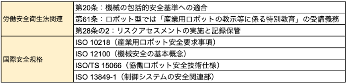 パレタイザー導入時には、以下の法令・規格への適合が必須です。