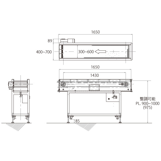 | W300XNH20XAL3300 軸間P=1480 スプロケット付 | 1650 | 900~ 1,000 | 400 | 1430 | 300 |