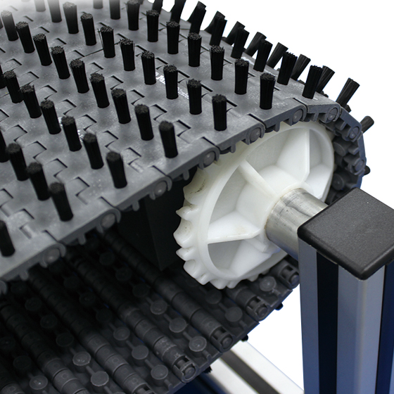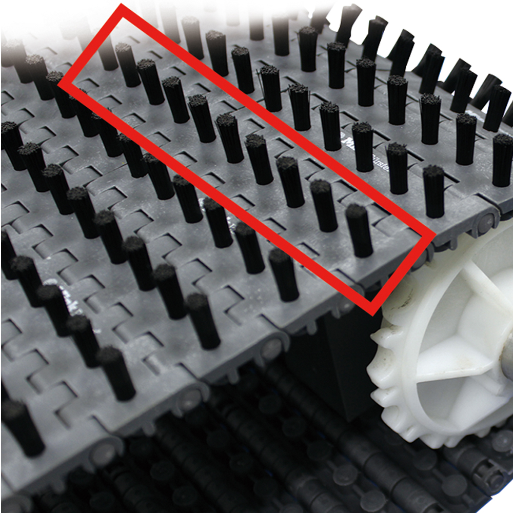 ベルトシステムブラシはワークを浮かせて支持する事で、すり傷を防止し、搬送時の衝撃を優しく吸収します。