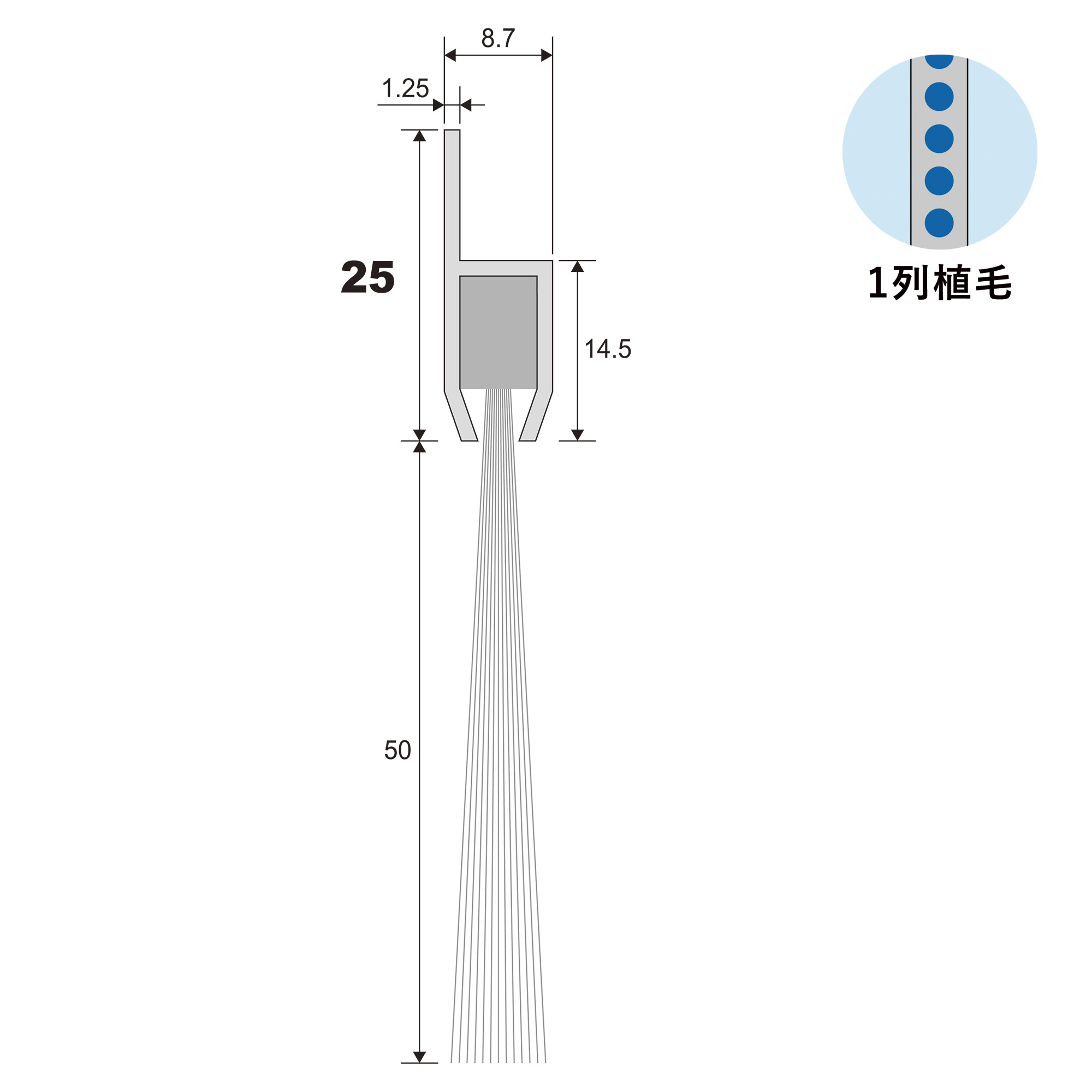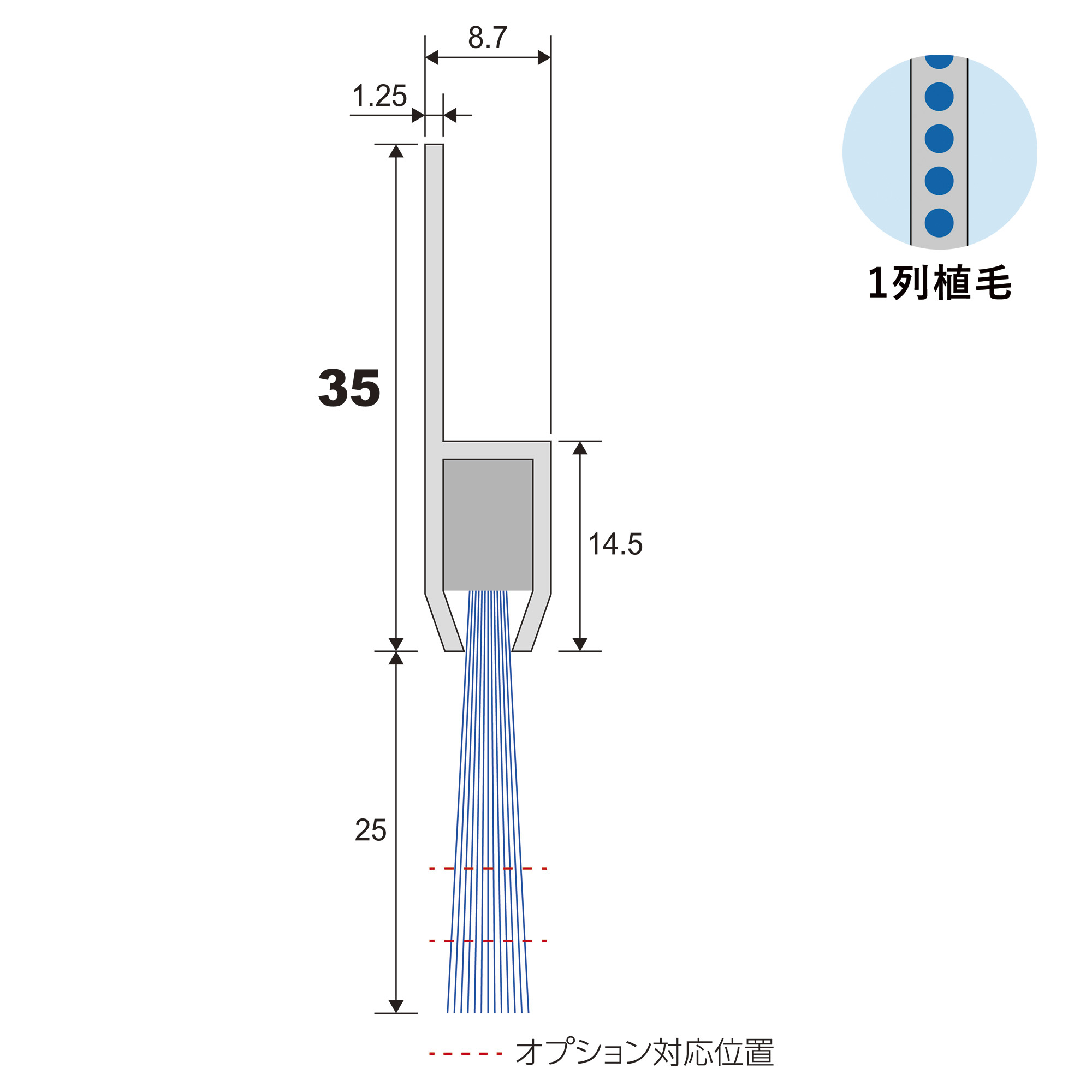 | 注文番号 | 型番 | 長さ (m) | 毛丈 (mm) | ブラシ 材質 | ブラシ 線径 | ブラシ色 | フレーム高さ (mm) | 厚み (mm) | 耐熱温度 (℃) | 重量 (g) |